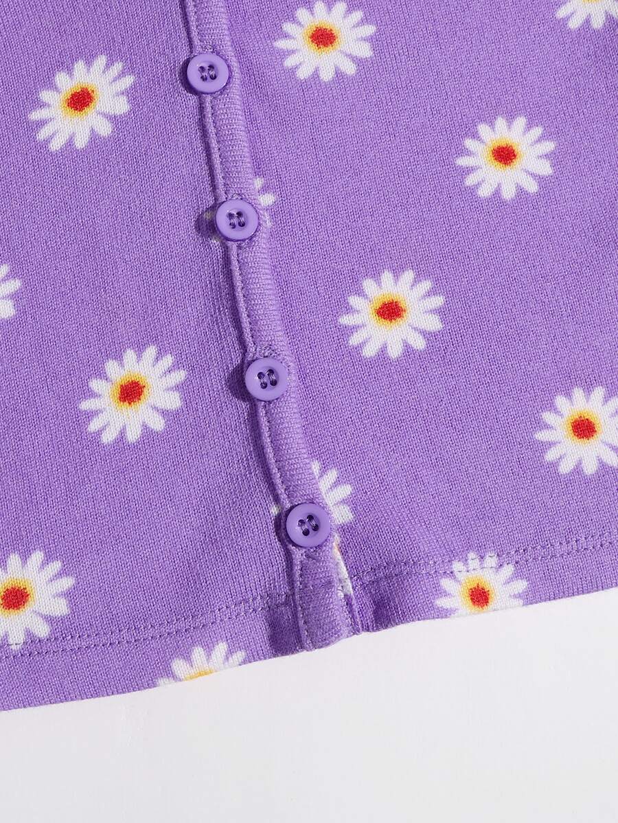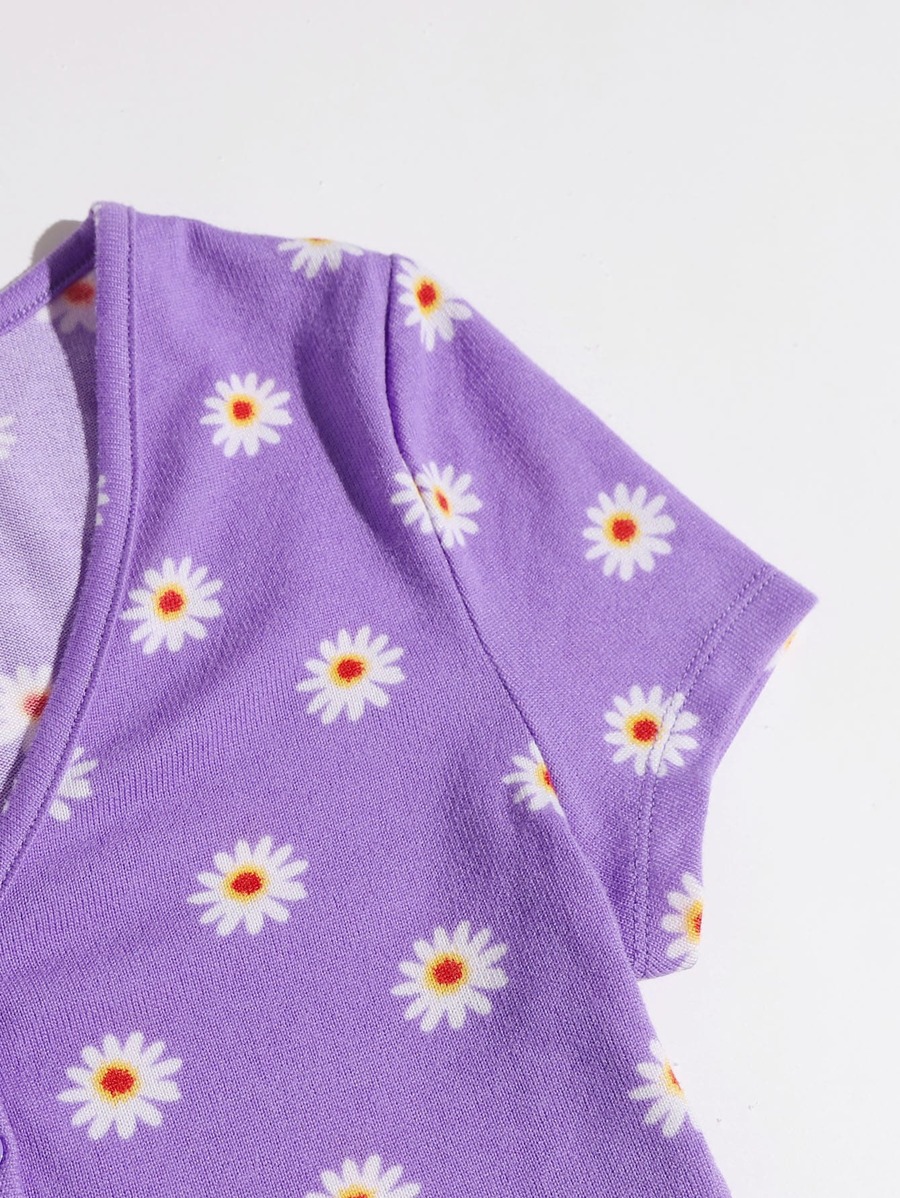 Camiseta Corta Floral Con Botones En La Parte Frontal