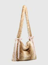 Kawaii Bolso de hombro/cruzado de mujer con capacidad grande, de pelo largo y grueso, con estampado de leopardo y ciervo, de estilo retro Y2K de moda, para otoño/invierno
