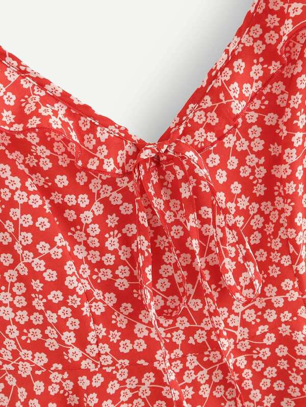 Vestido ribete fruncido con estampado de calicó