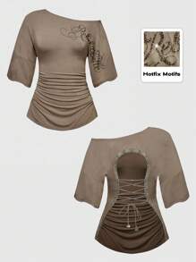 Street Life Camiseta de mujer con detalles de strass, escote espalda descubierta, estilo calle California Girl