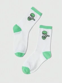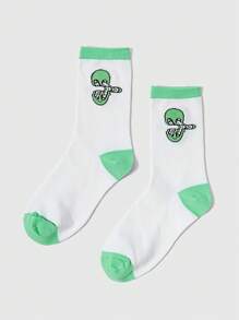 Carolina Marquez 1 par de calcetines verdes de media pantorrilla para mujer con diseño de alien