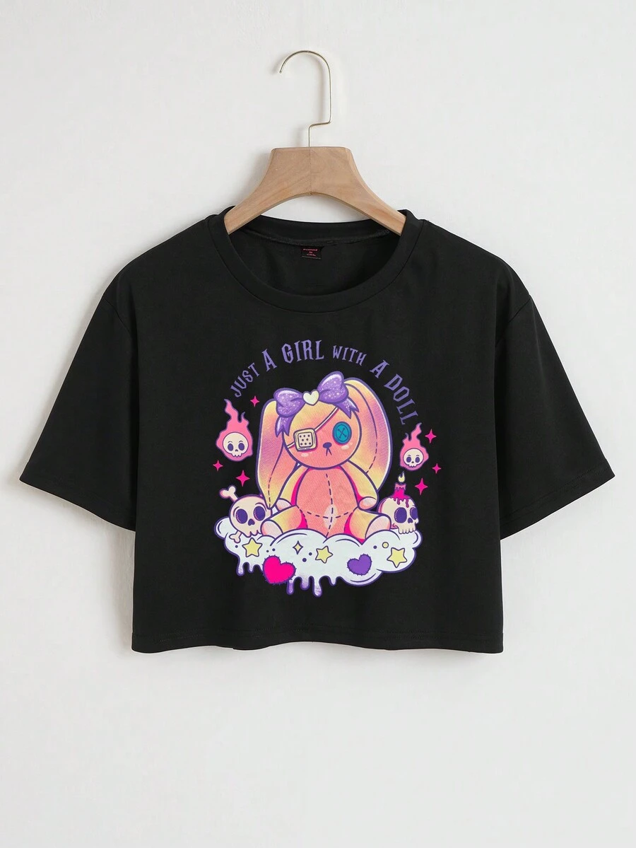 Lemon Design Camiseta crop con estampado de slogan y dibujos animados