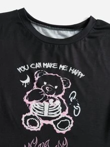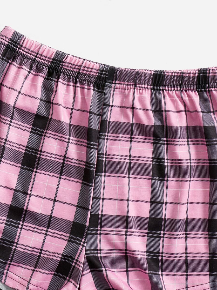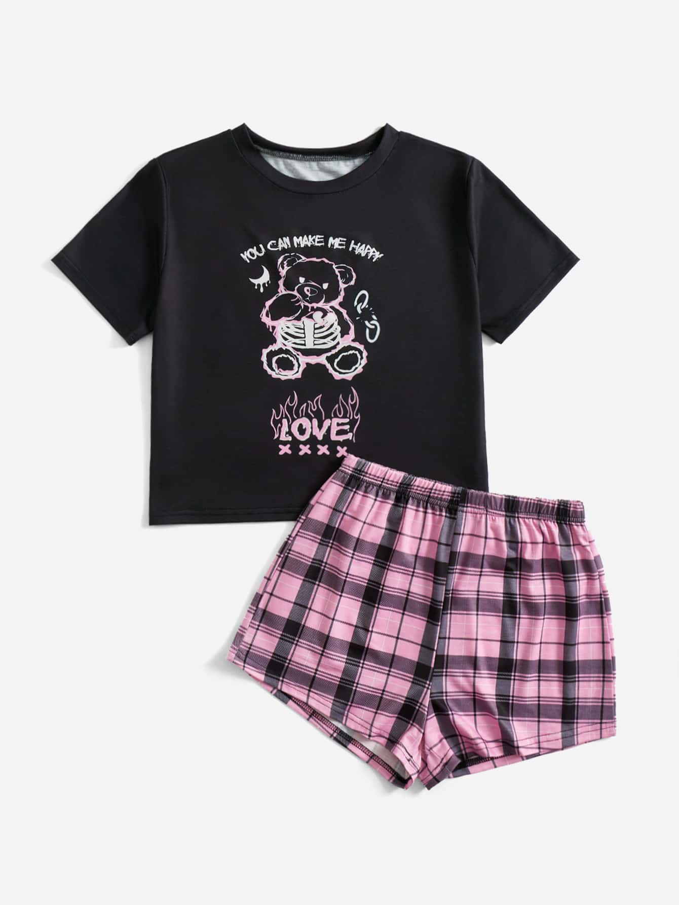 Conjunto de pijama con estampado de oso de dibujos animados de cuadros