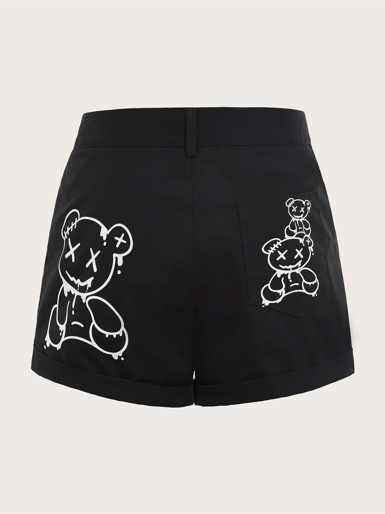 Shorts con estampado de oso de dibujos animados de pierna recta
