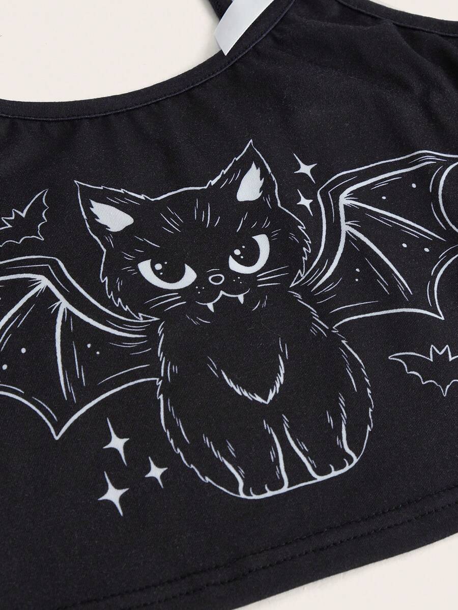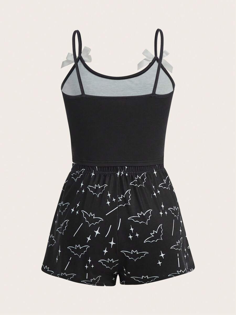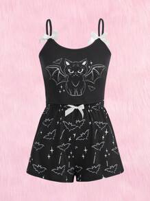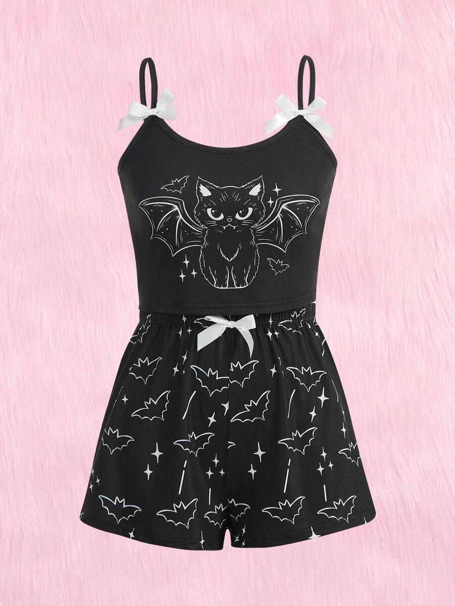 Mystic heart Kawaii Conjunto de pijama gato de dibujos animados & murciélago con estampado con diseño de lazo
