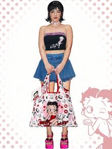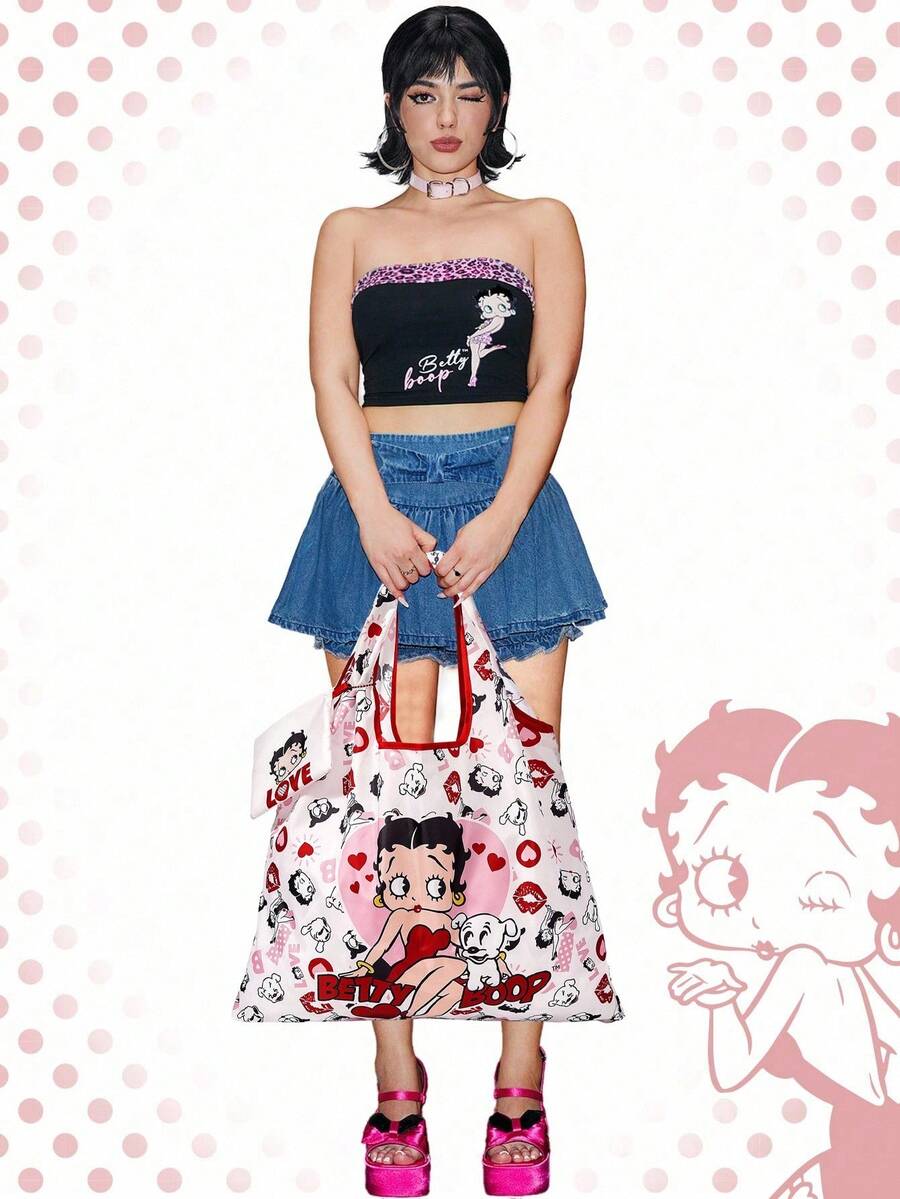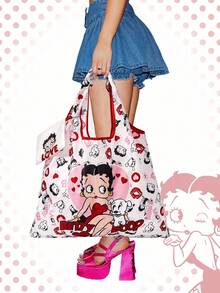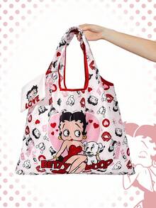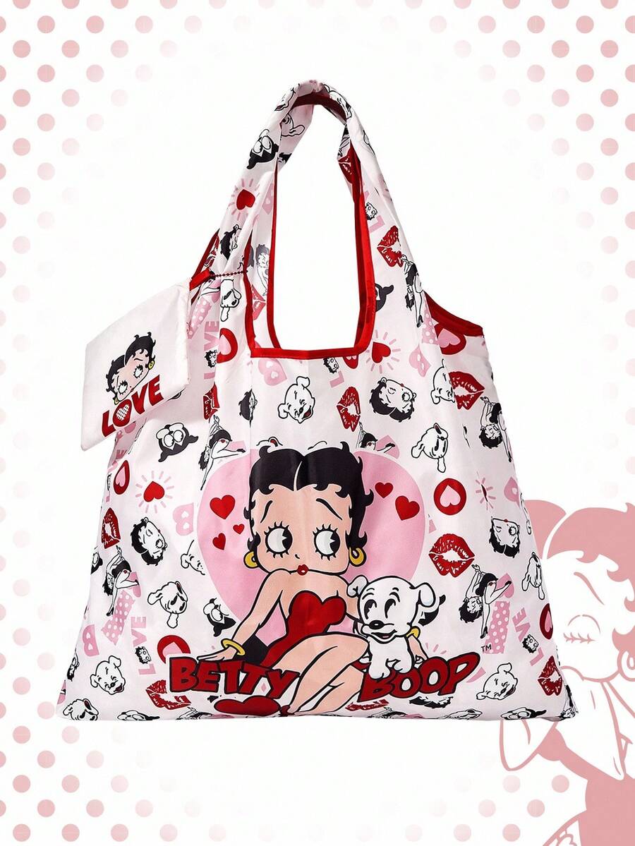 Betty Boop | ROMWE Bolso de mano grande con capacidad plegable y monedero, bolso de compras multifunción con diseño de personaje lindo y adorable