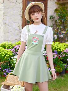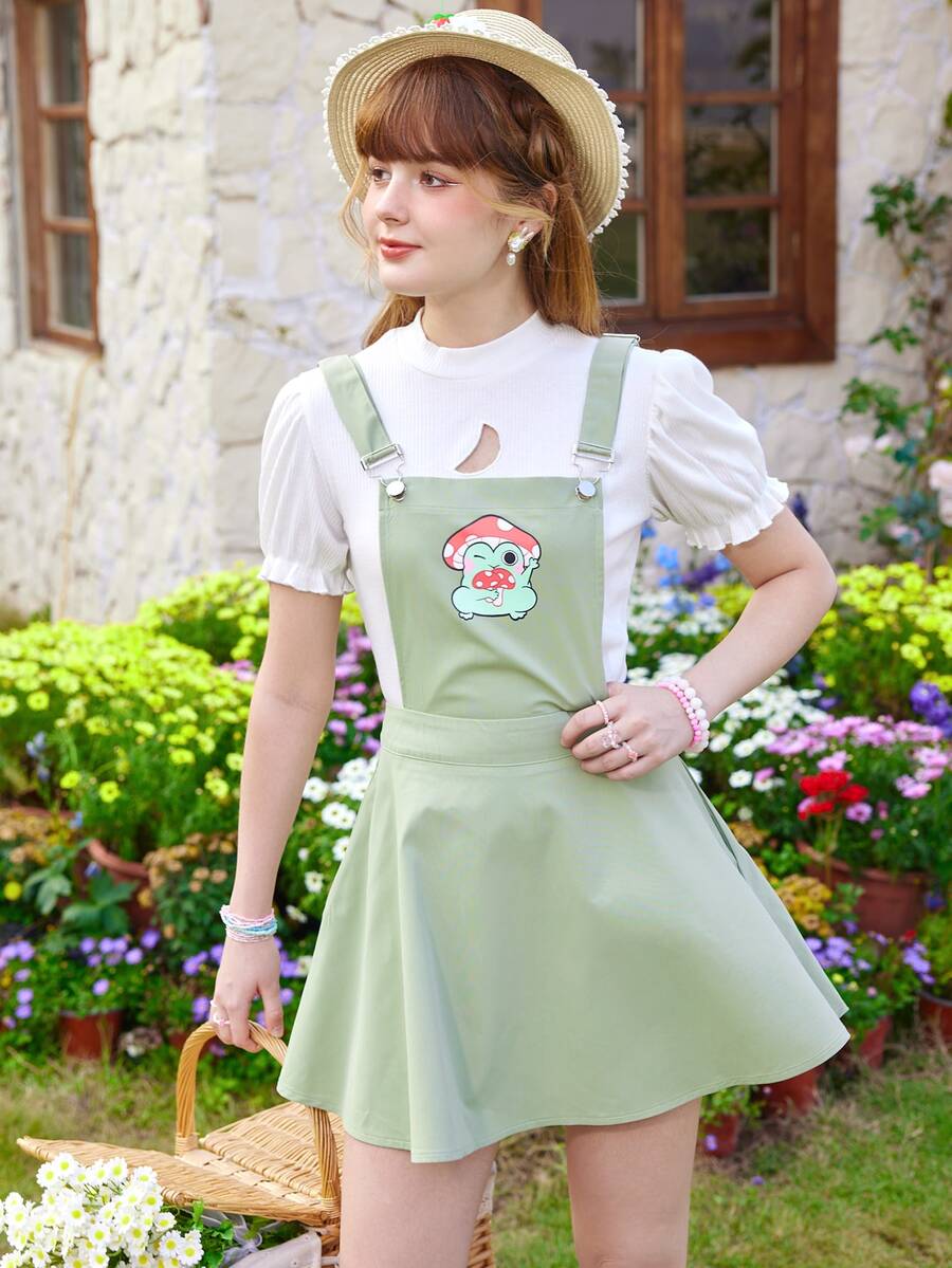 Kawaii Vestido sin camiseta con gráfico de rana de dibujos animados