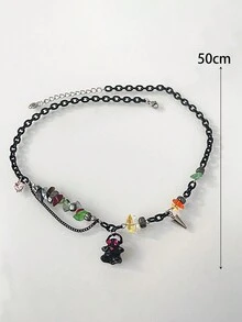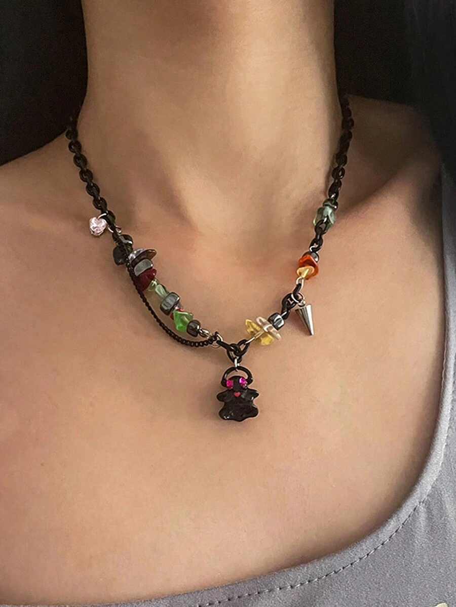 Fairycore Collar de cadena con dibujos animados con adorno de fantasma al azar piedra