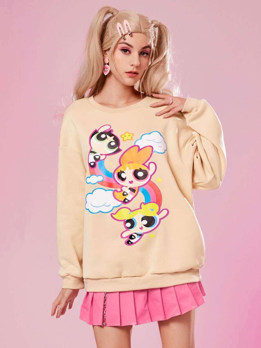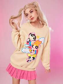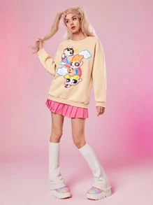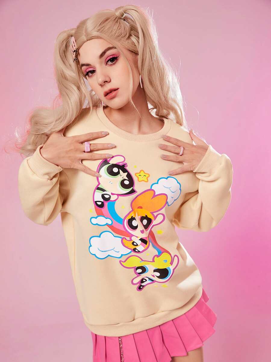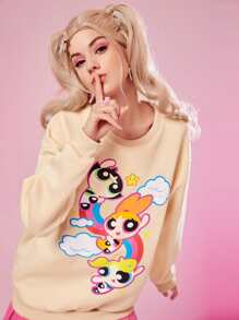 The Powerpuff Girls | ROMWE Sudadera con estampado de dibujos animados de hombros caídos