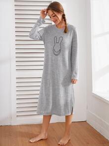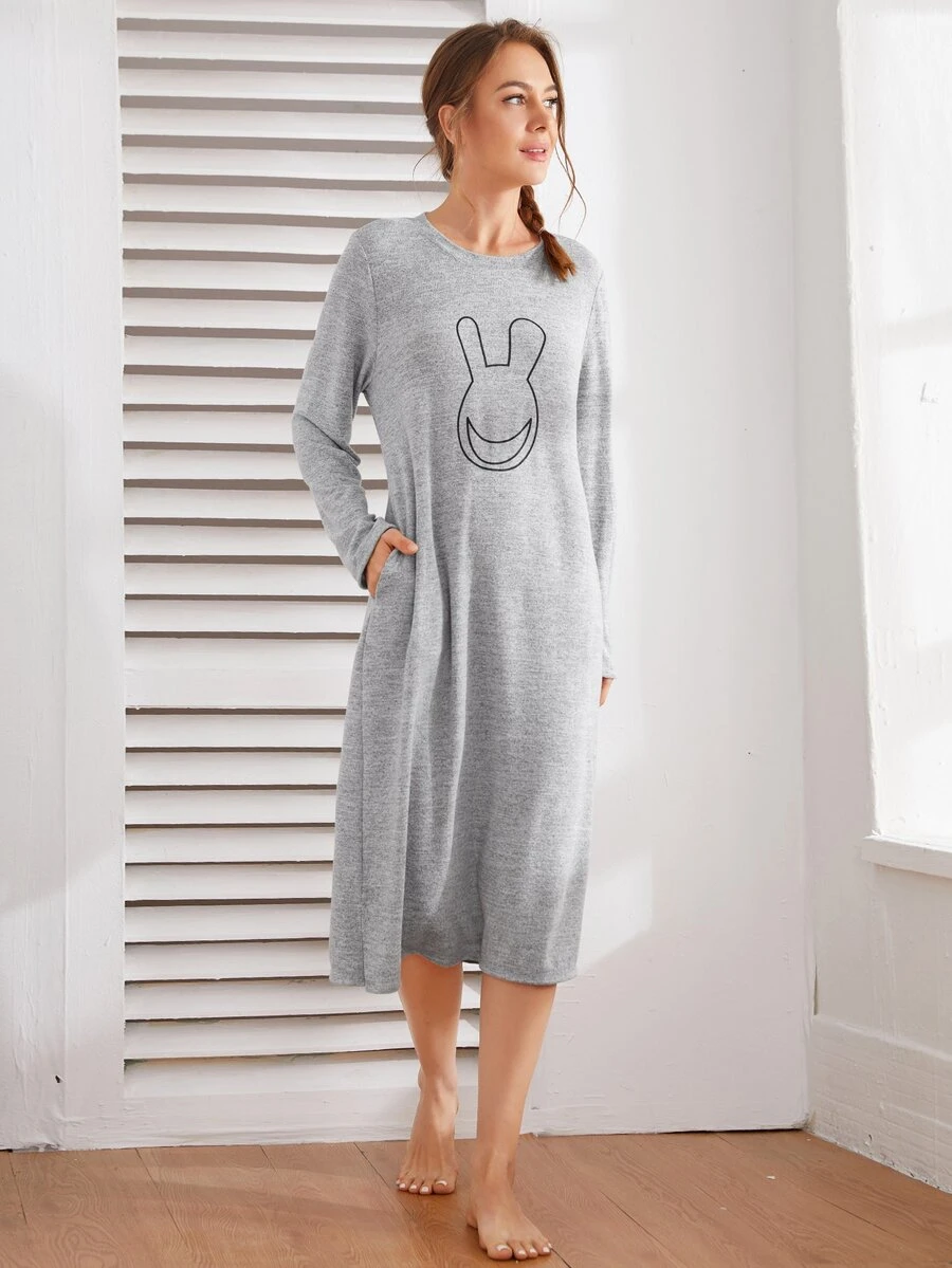 Vestido de dormir con bolsillos ocultos con estampatdo de dibujos animados