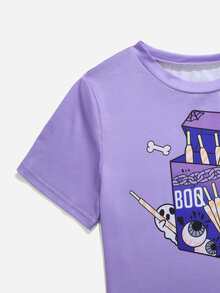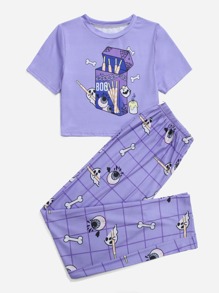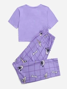 Anime Conjunto de pijama con estampado de dibujos animados de cuadros