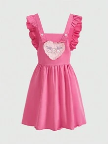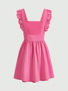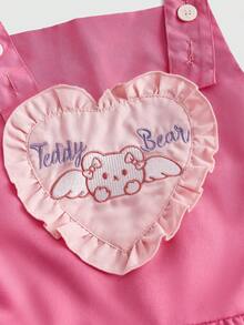 Vestido overol con estampado de dibujos animados ribete con fruncido sin camisa