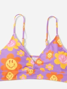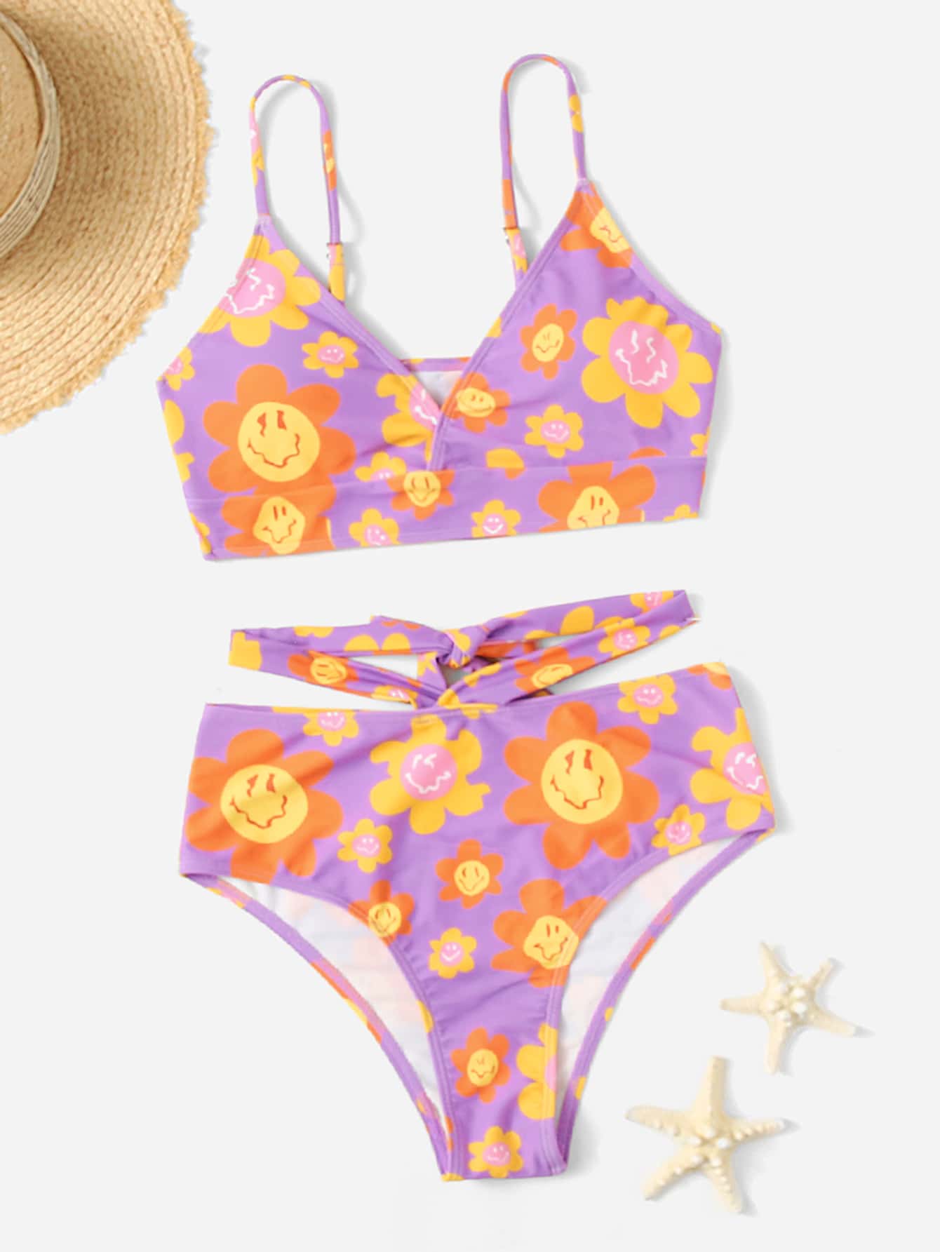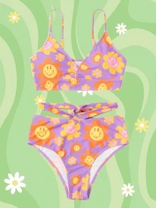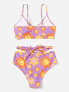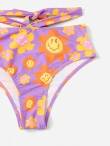 Bikini con estampado de dibujos animados y cierre de corbata en la espalda