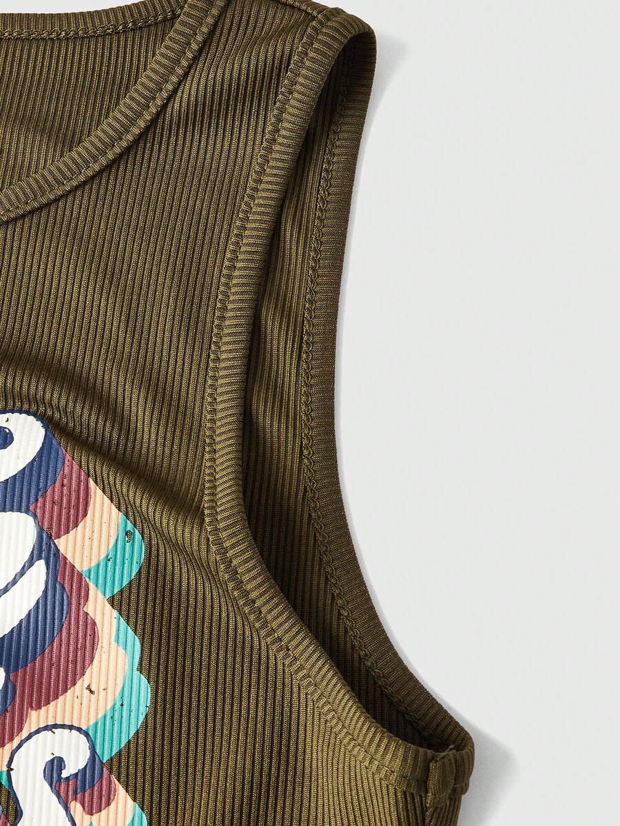 Top de tirantes informal con estampado de letras con estilo retro hippie