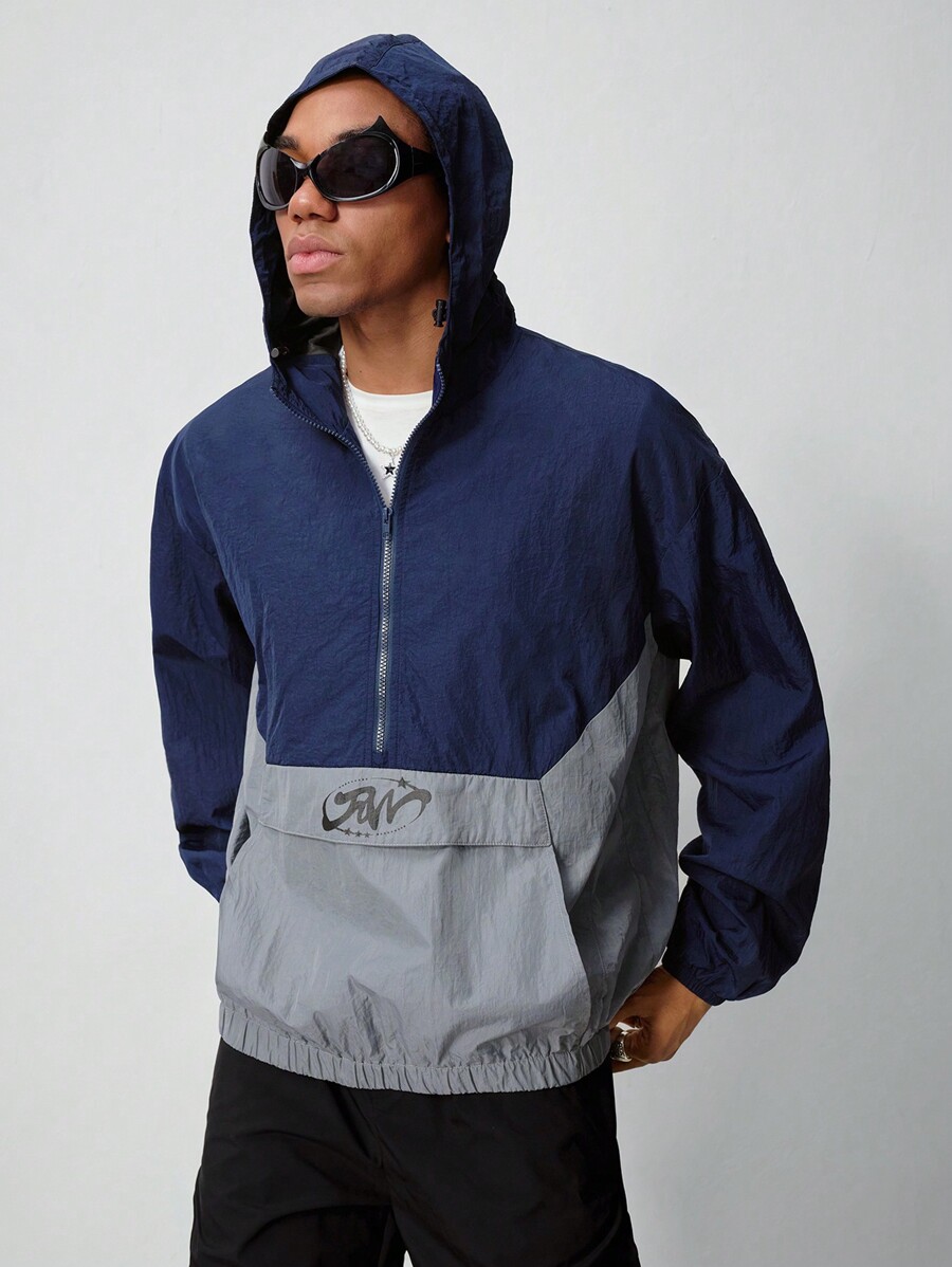 Casual Chaqueta con capucha de manga larga con bloqueo de color e impresión de letras para hombres