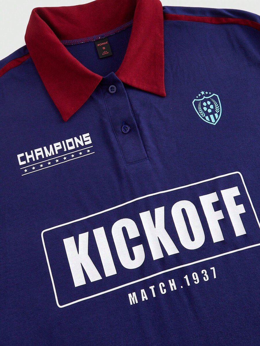 Street Life Camiseta de cuello polo para mujer con eslogan deportivo de fútbol, icono de palabra y bloques de color casual