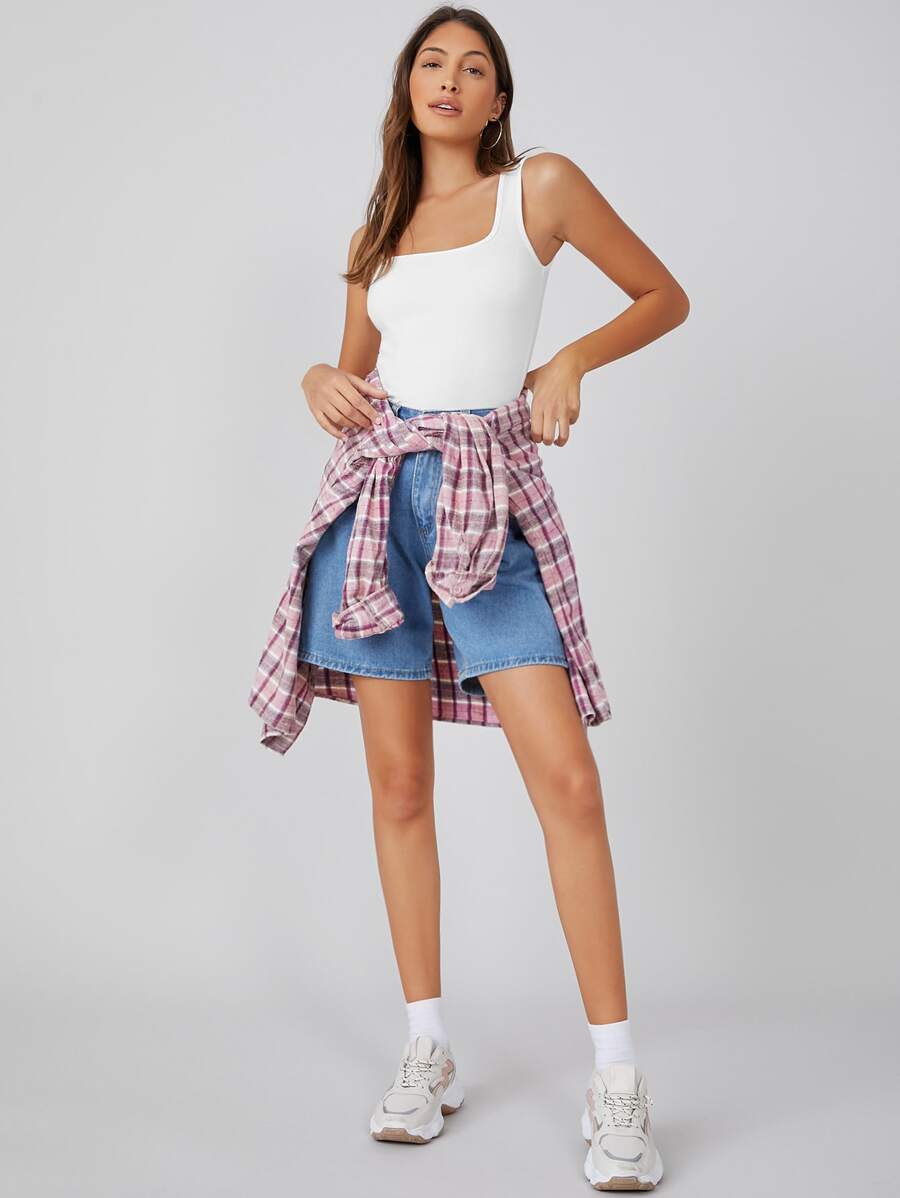 Top de tirantes cuadrado de cuello sólido de uso versátil