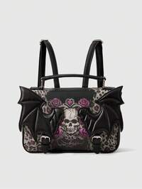 Goth Mochila de hombro con diseño de alas de murciélago estilo gótico, mochila escolar, Halloween