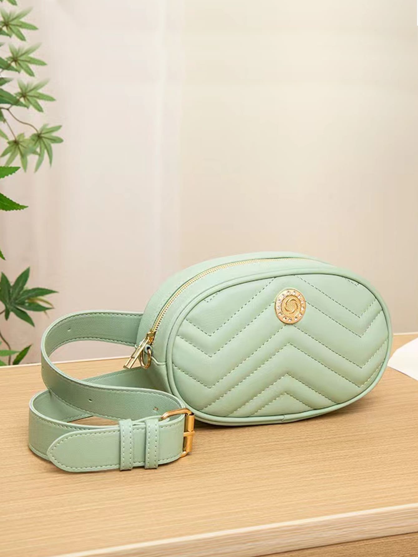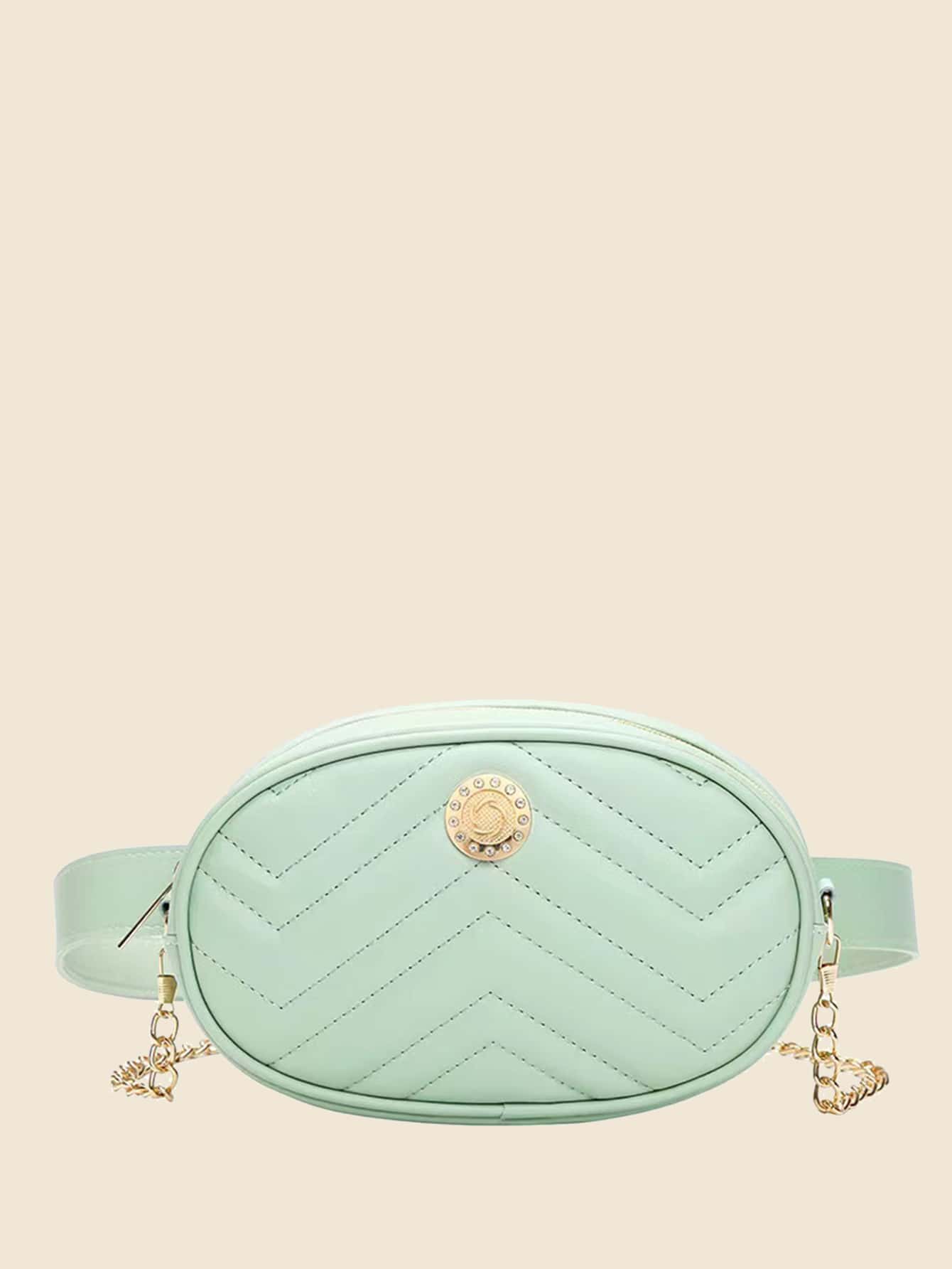 de cheurón guateado con diseño de diamante de imitación Cinturón de cadena Bolso