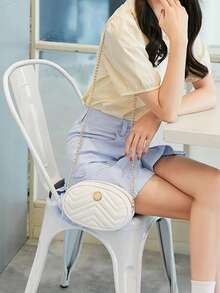 Bolso de Cinturón de cadena de cheurón guateado con diseño de diamante de imitación