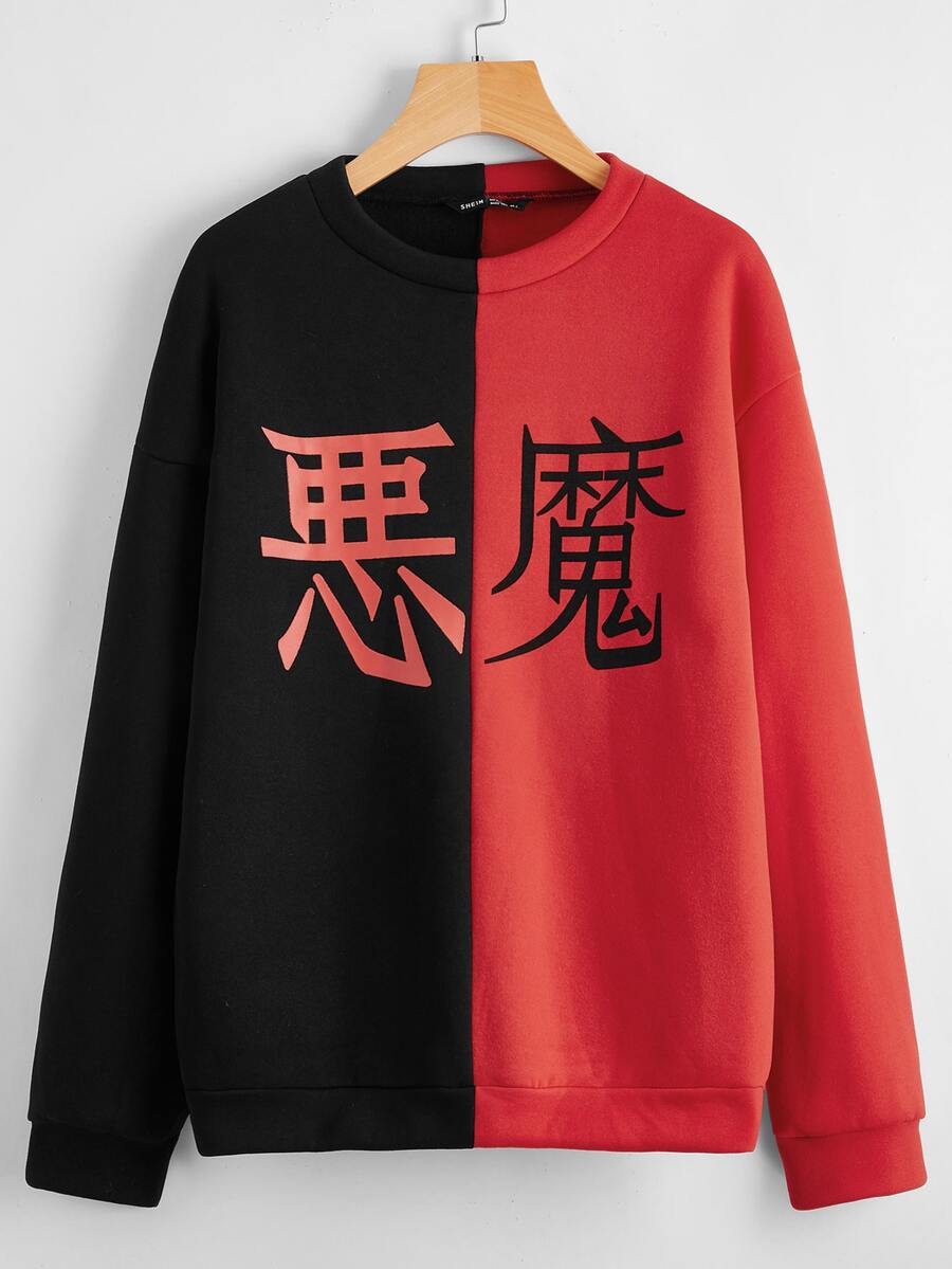 Pullover de color combinado con estampado de letra china