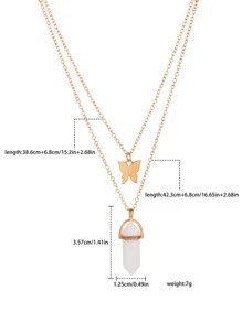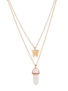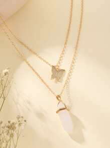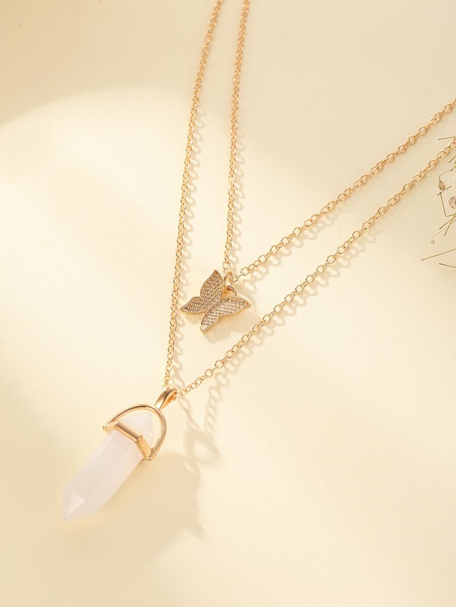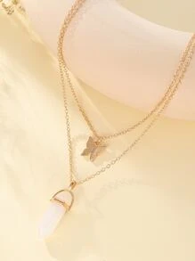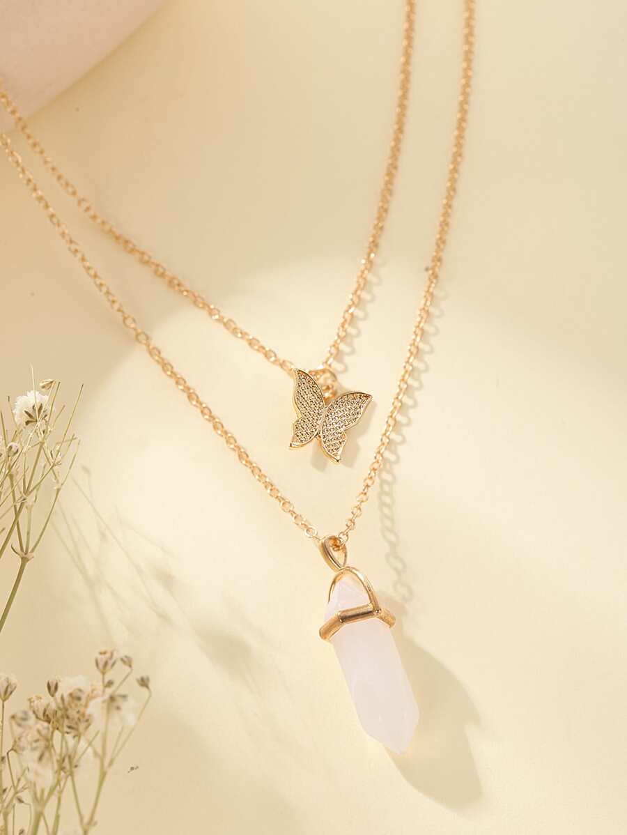 Collar a capas con diamante de imitación con mariposa & con diseño geométrico