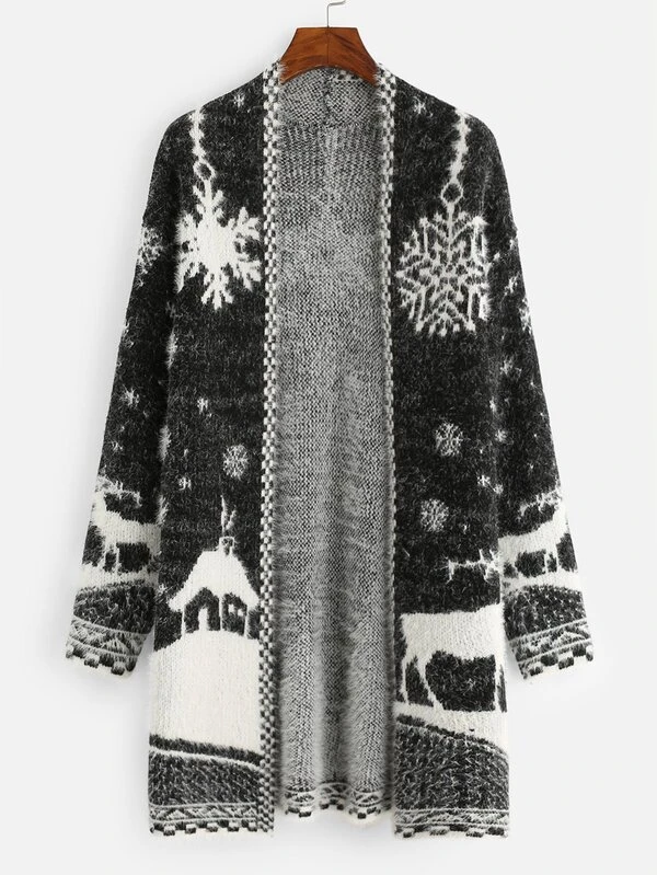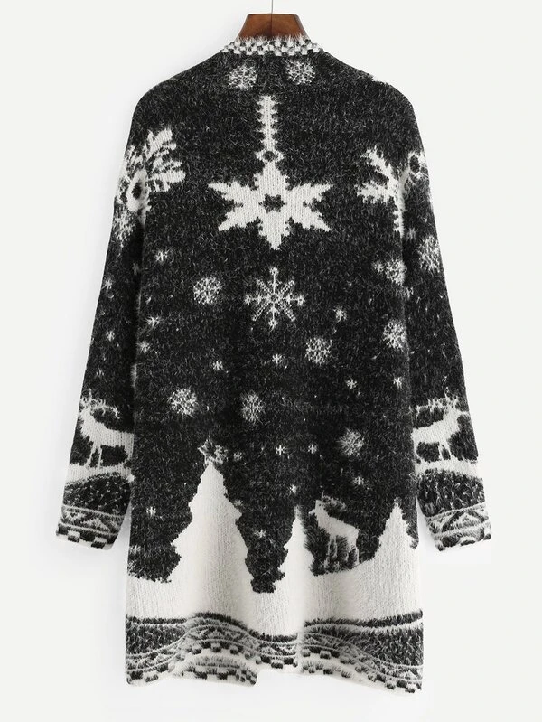 Chaqueta tejida con estampado de copo de nieve y ciervo de Navidad