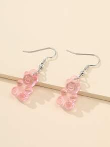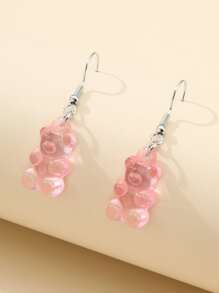 Pendientes largos con oso transparente