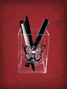 Bote para lápices transparente con mariposa & con patrón de cráneo