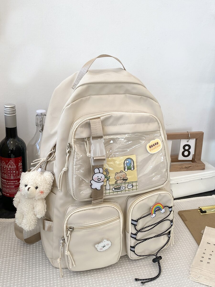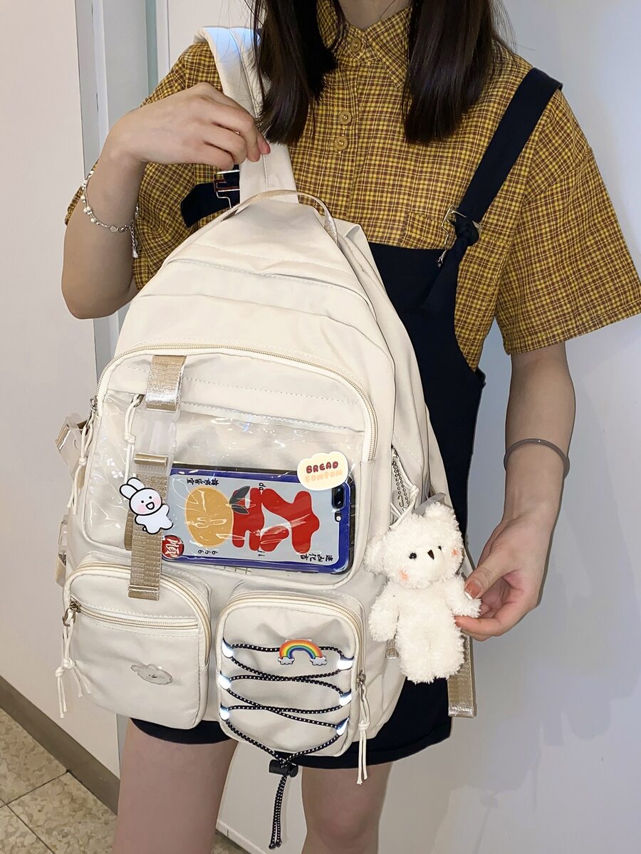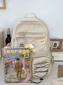 transparente con bolsillo delantero Mochila con Adorno para bolso