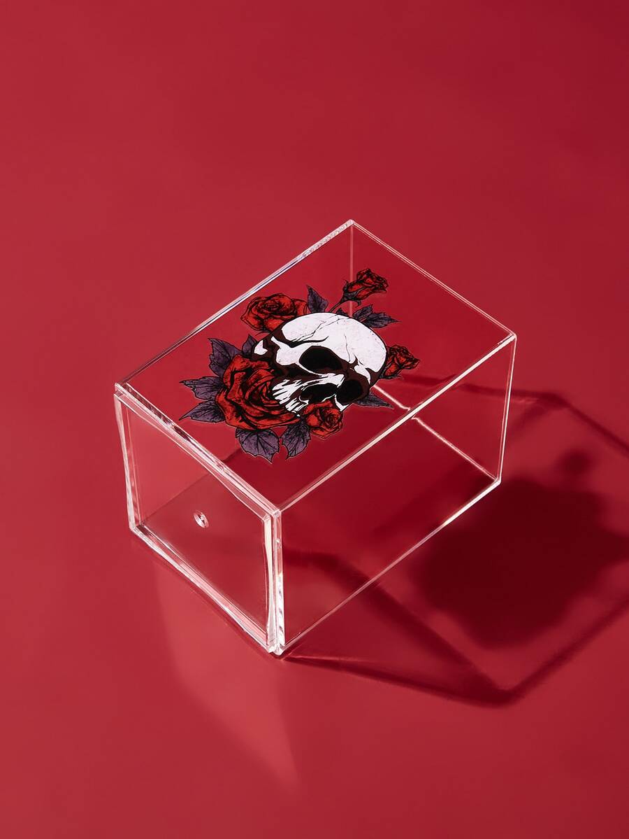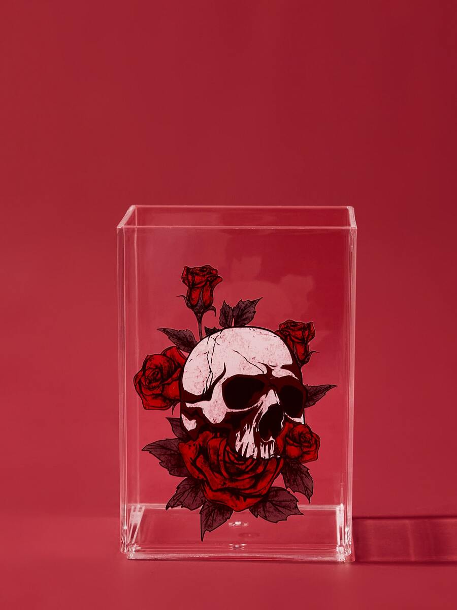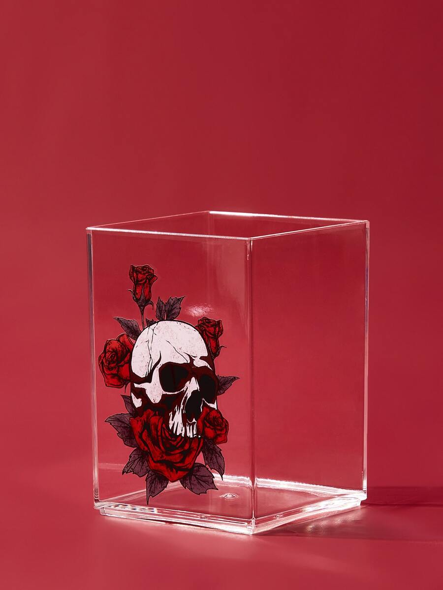 Bote para lápices transparente de cráneo & con patrón floral