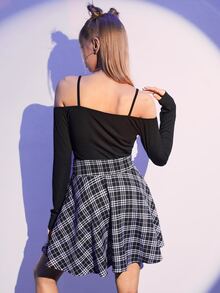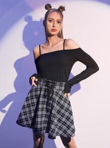de hombros descubiertos Camiseta & con cordón de cuadros Falda