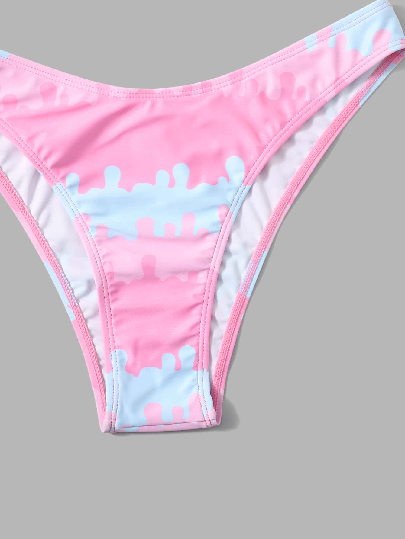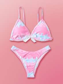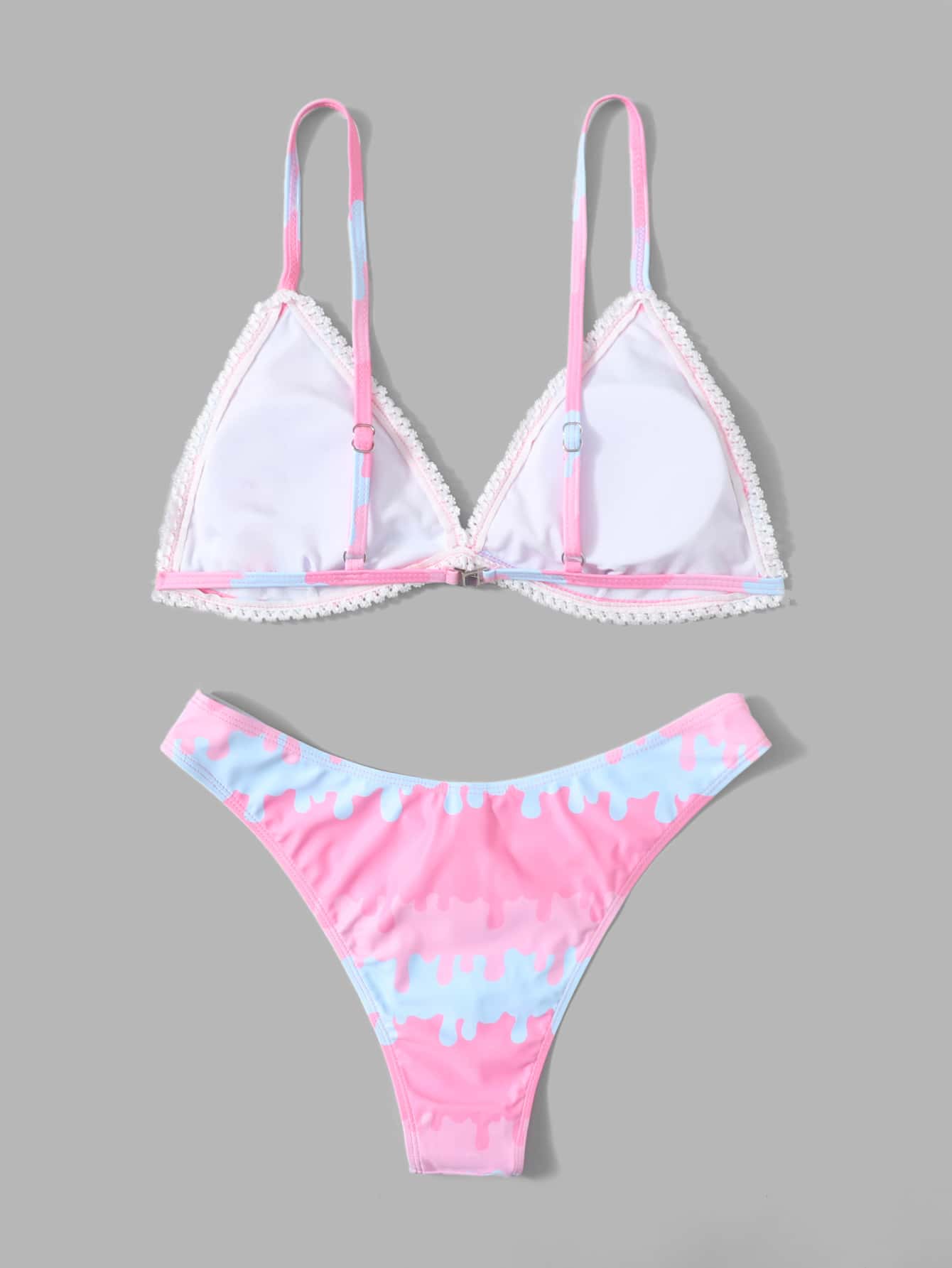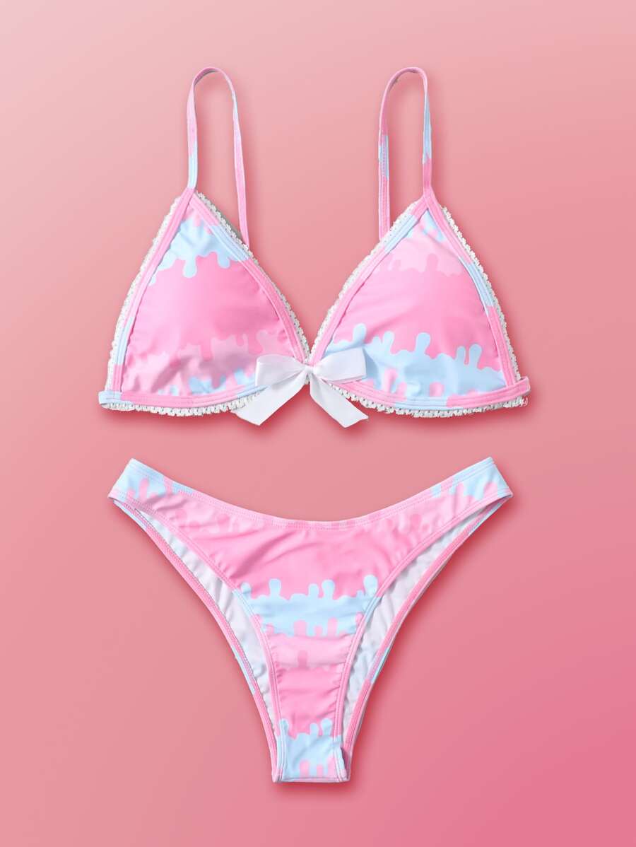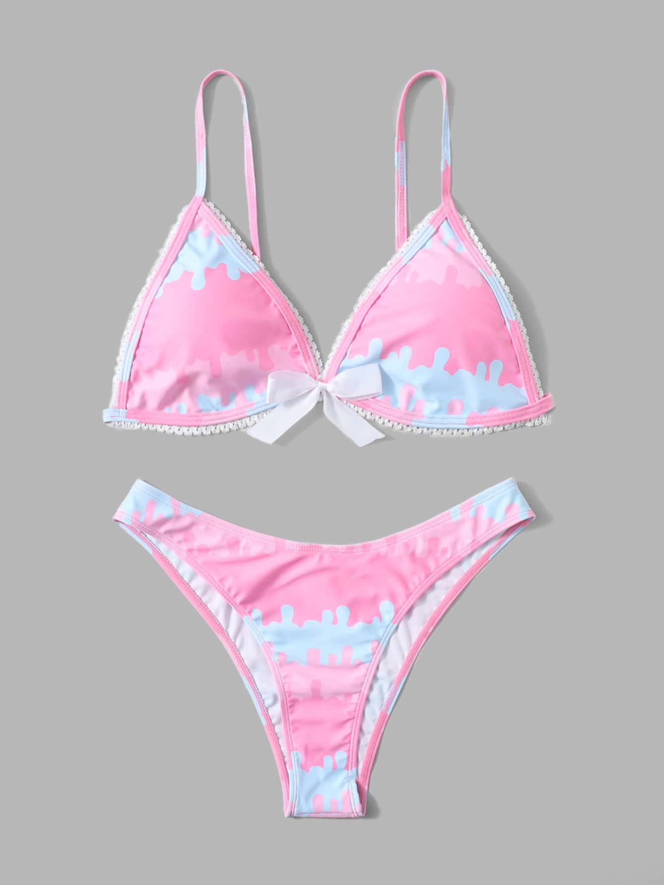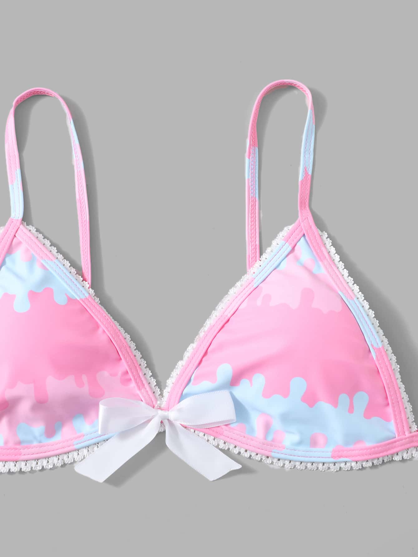 Anime Bikini de encaje con lazo decorativo y bloques de color contrastantes