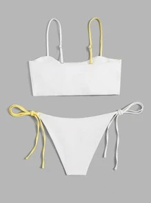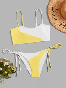 Bikini con bloques de color y laterales ajustables con lazos