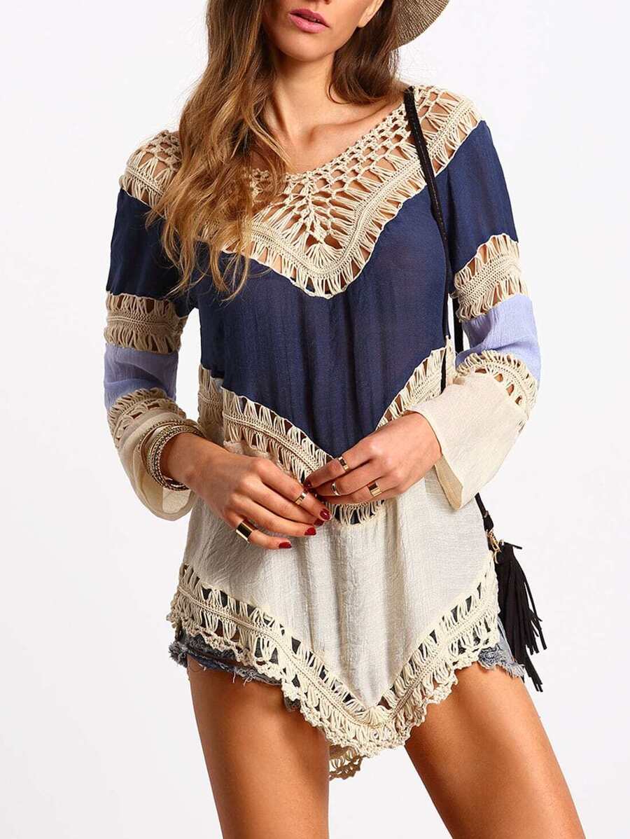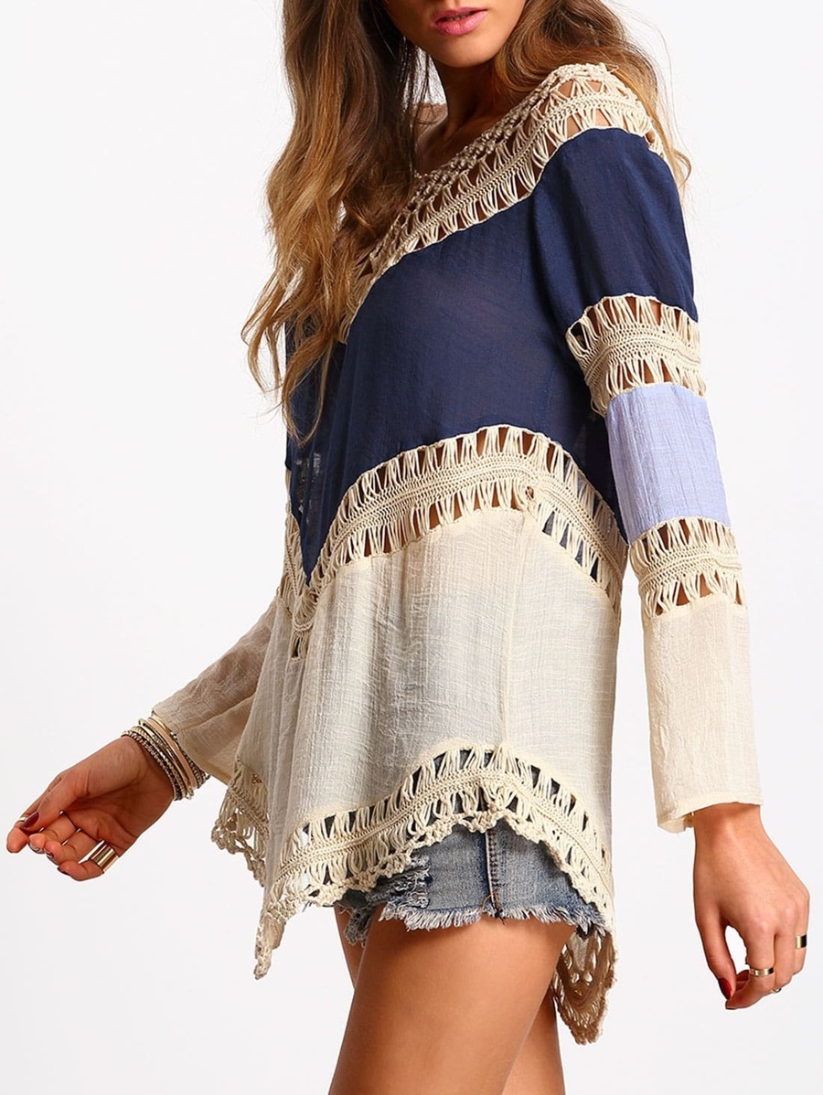 Top hueco crochet suelto -color combinado