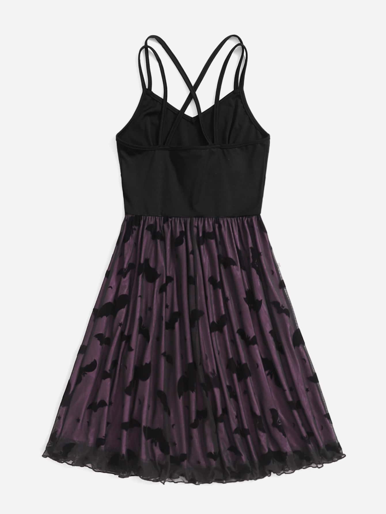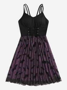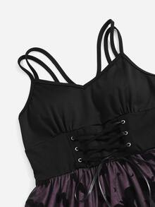 Vestido de tirantes en contraste murciélago de malla con cordón