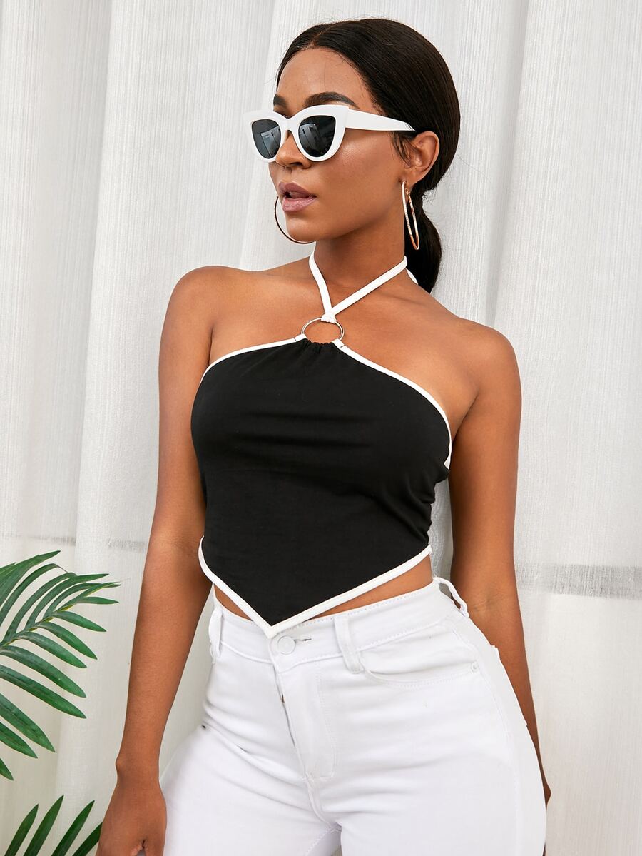 Top pañuelo con aro O unido en contraste