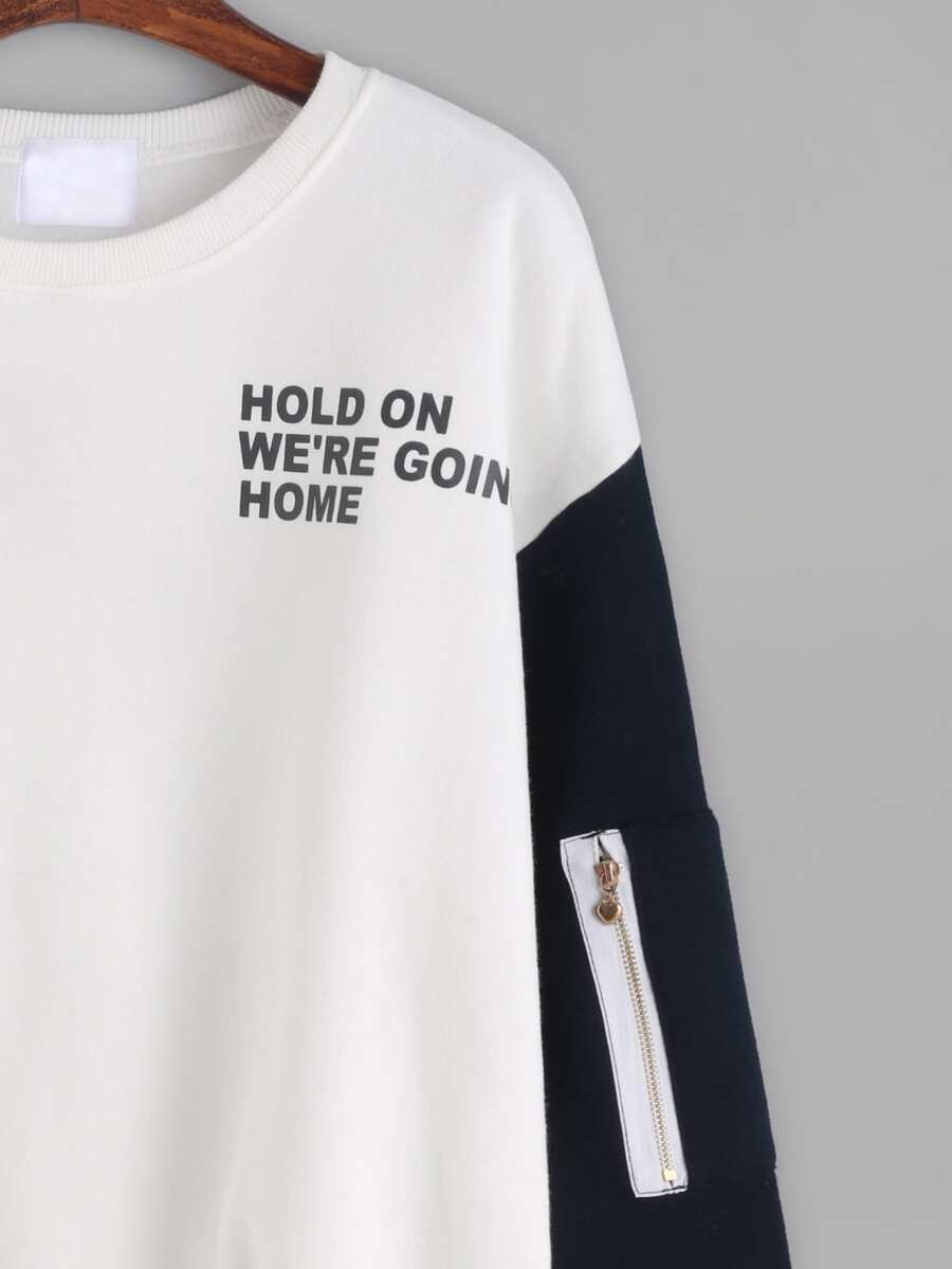Sudadera con hombros caídos con estampado de letras con detalle de cremallera