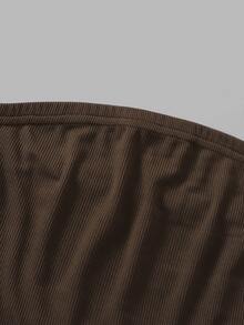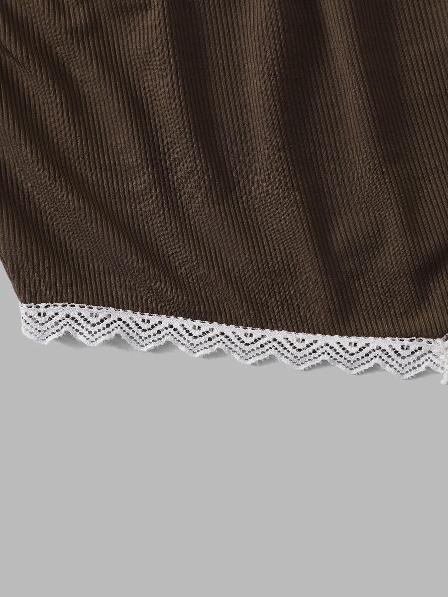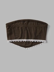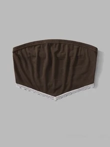 Top tubo corto con encaje en contraste de canalé