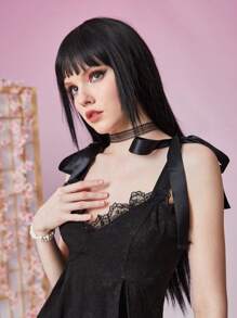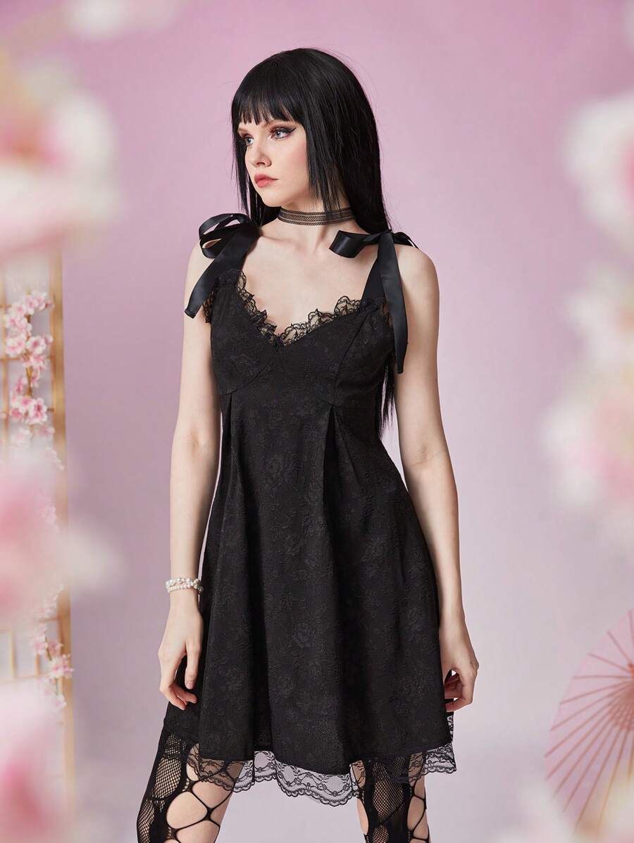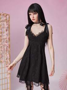 Vestido de tirantes con encaje en contraste de hombros con cordón