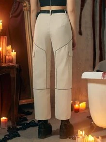 Pantalones cargo en contraste reflectante con cinturón con hebilla
