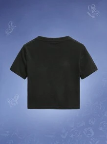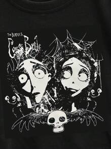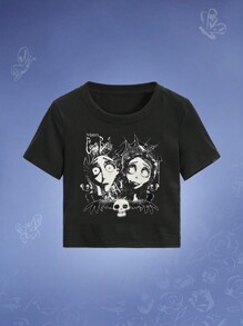 Corpse Bride | ROMWE Camiseta corta de ajuste ceñido con estampado de La Novia Cadáver, todo a juego, para la escuela