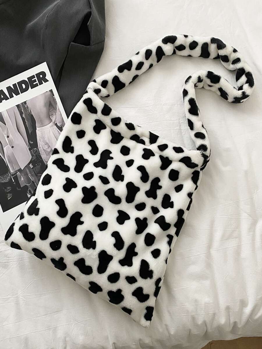 Bolso bandolero mullido con estampado de vaca