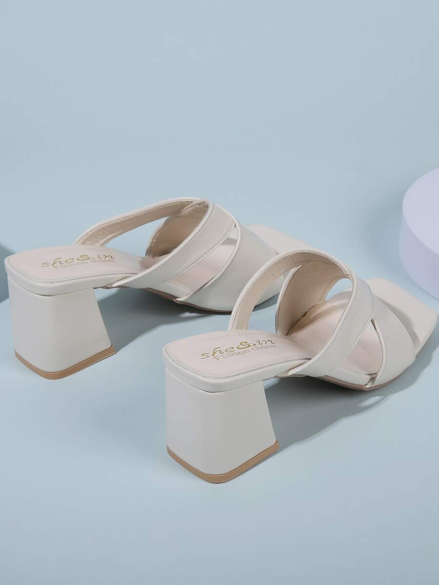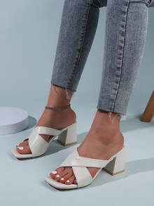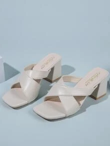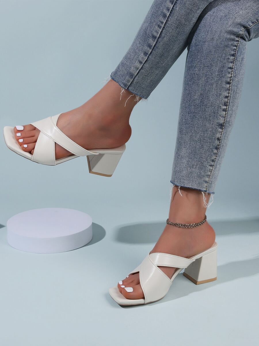 Mules con tacón grueso con tiras cruzadas