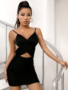 Vestido ajustado de tirantes de espalda abierta con tiras cruzadas