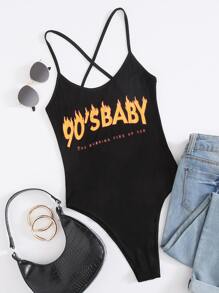 Body con estampado de slogan y fuego con tiras cruzadas