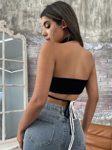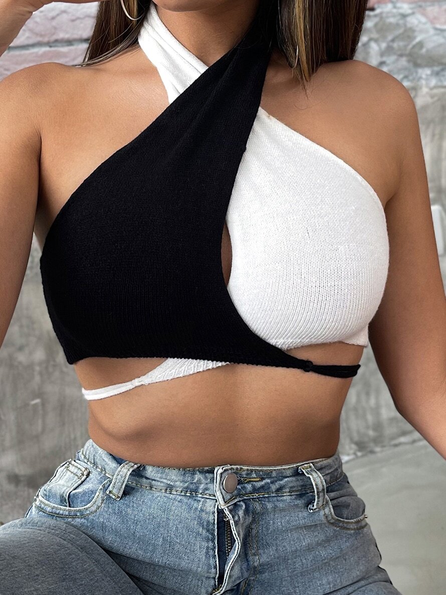 Top halter de punto con tira cruzada de espalda abierta con cordón de color combinado