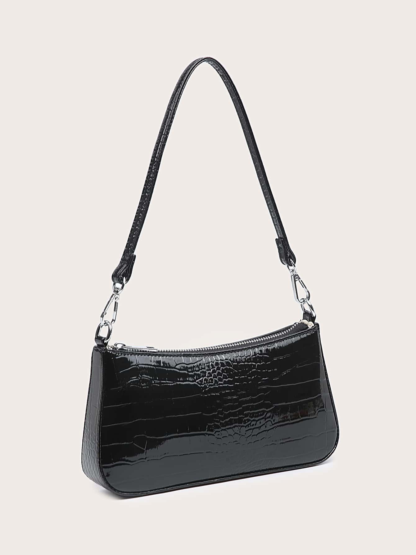 Bolso Baguette Con Relieve De Cocodrilo