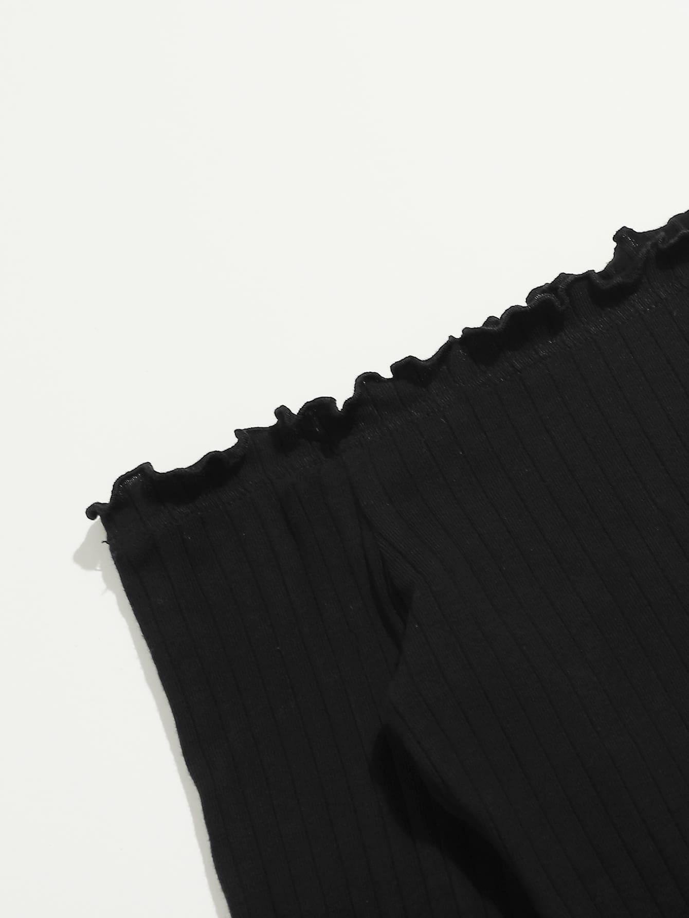 Conjunto De Top De Bardot Recortado Con Borde De Lechuga Y Falda De Tartán Con Dobladillo Dividido.