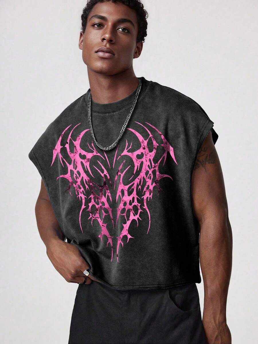 Goth Top de tirantes corto con cuello redondo, estampado de moda retro para el verano